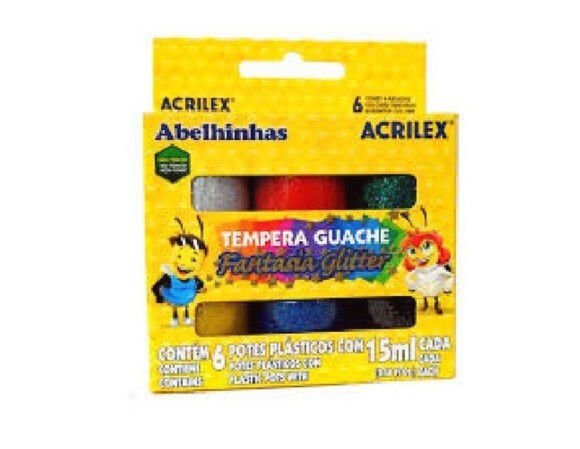 Tinta Guache 6 Cores 15ml Glitter - Acrilex