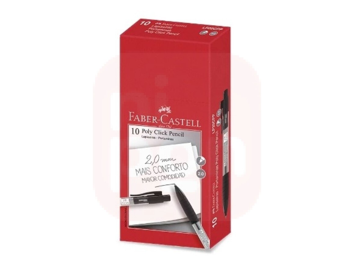 A Lapiseira Poly Click Pencil 2.0. da Faber-Castell é ideal para diversos usos, desde os primeiros desenhos e escritas aos trabalhos mais elaborados e técnicos. Para garantir máximo conforto e segurança durante o uso, a lapiseira foi desenvolvida com um formato ergonômico e com grip emborrachado. Além de toda a praticidade de ter um apontador no topo, tudo em um único produto. Muito mais conforto para escrever e desenhar Formato ergonômico e grip emborrachado Praticidade: com apontador na ponta