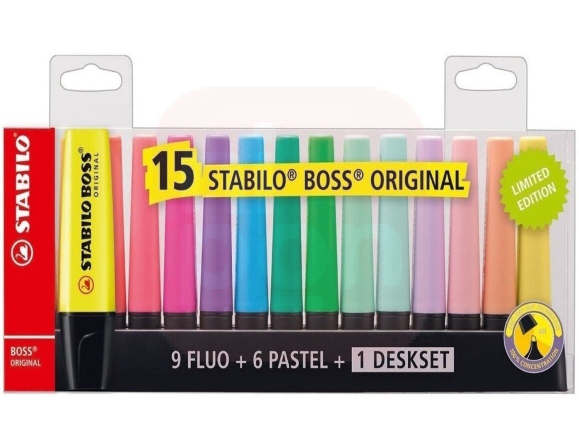 Display Stabilo Boss com 15 unidades.