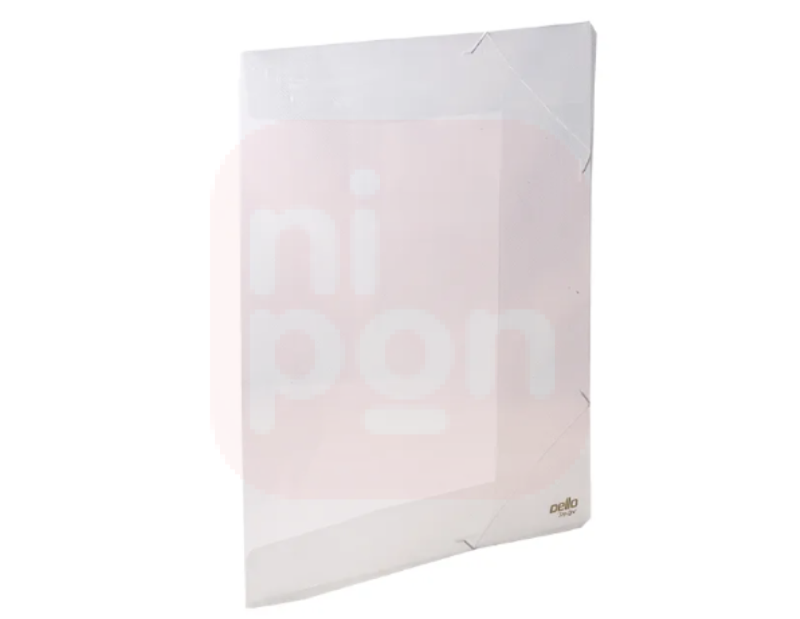 Pasta em plástico polipropileno com abas internas para sustentação de documentos.