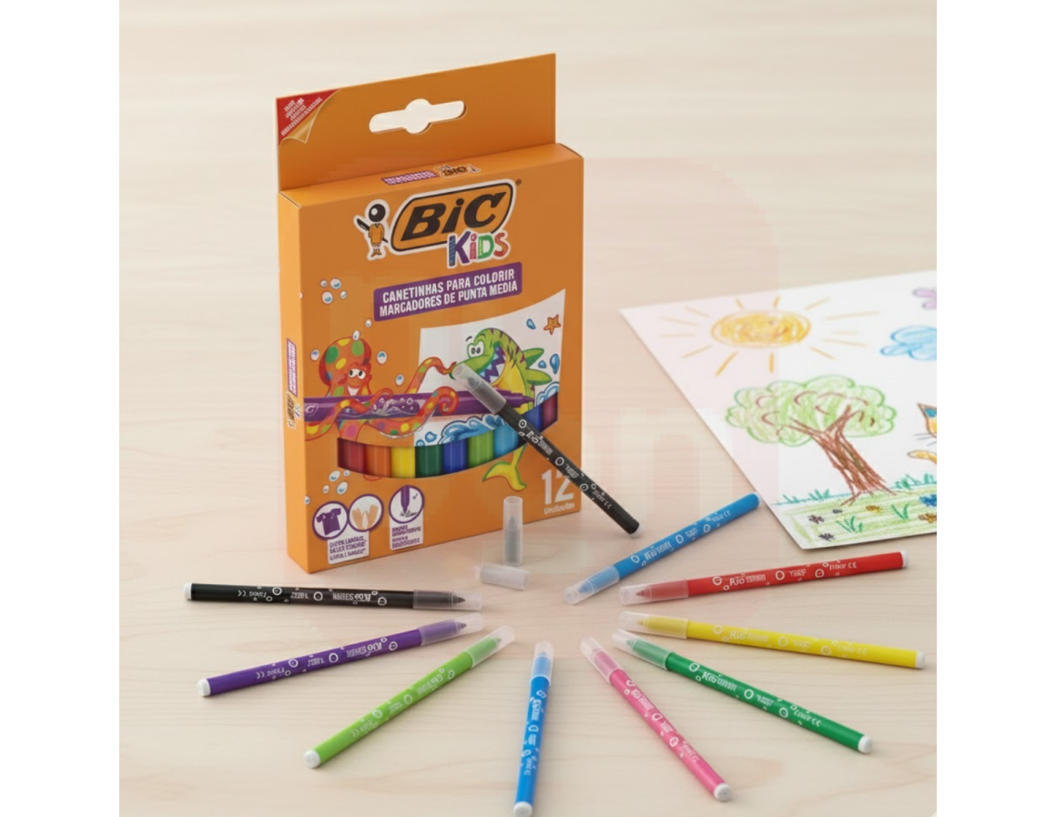 A Caneta Hidrográfica BIC Kids Ponta Média 12 Cores é ideal para estimular a criatividade das crianças com segurança e qualidade. Desenvolvida especialmente para os pequenos, possui tinta lavável, ponta resistente e corpo ventilado, garantindo conforto e tranquilidade tanto para pais quanto professores. Suas cores vibrantes e traço suave tornam o momento de desenhar muito mais divertido! Perfeita para atividades escolares, artísticas e recreativas.
