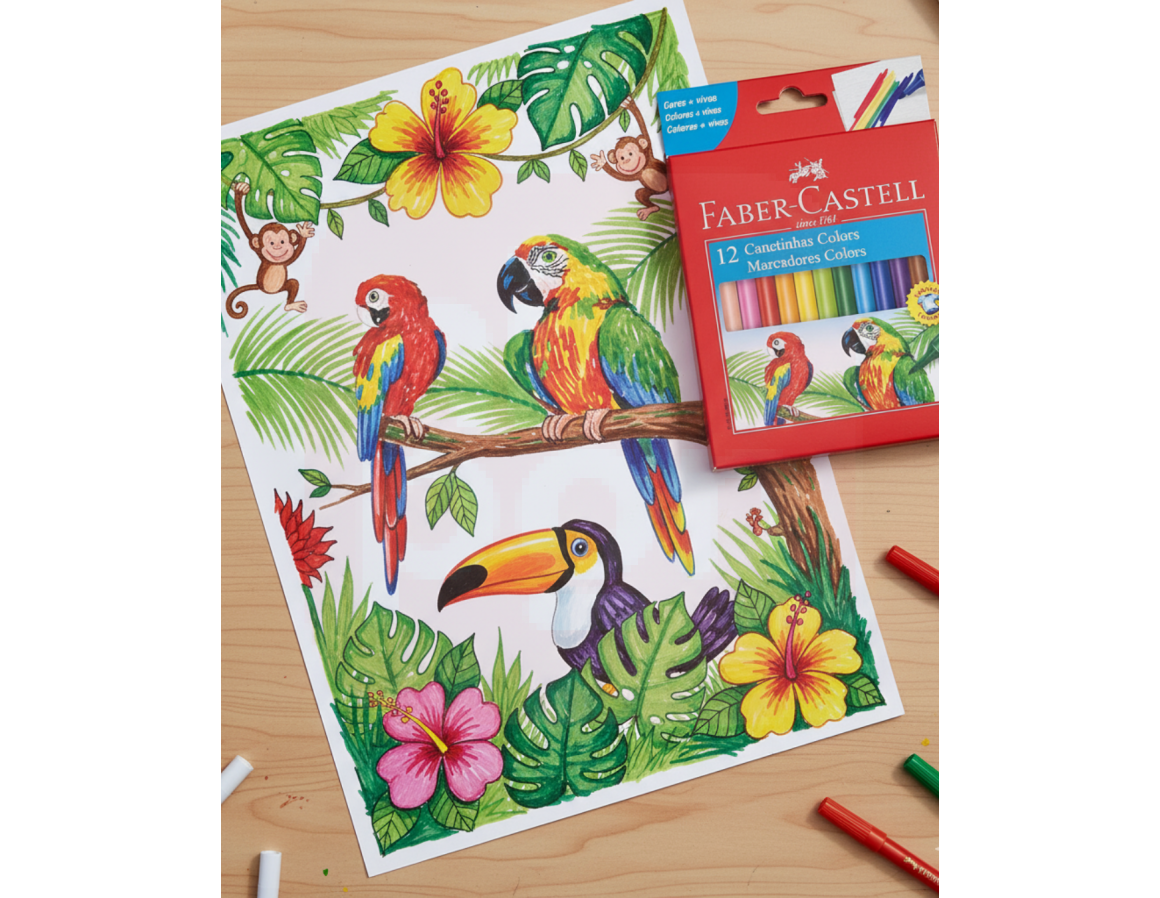 As Canetinhas Hidrográficas Faber-Castell são perfeitas para soltar a criatividade com cores vivas, duradouras e seguras. Com tinta à base de água, elas são fáceis de remover da pele e da maioria dos tecidos, garantindo tranquilidade para pais e educadores. Seu corpo ergonômico e ponta resistente proporcionam conforto e controle durante o uso, ideal para crianças em fase escolar e também para uso artístico. Além disso, contam com a tecnologia de tampa antiasfixiante, oferecendo mais segurança durante o manuseio por crianças.